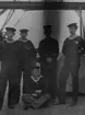 Manskap i arbete ombord på pansarskeppet DROTTNING VICTORIA under eskaderövningar år 1938.