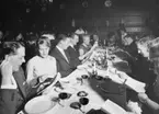 Värdshuset "Den gyldene flygeln". Cabaret med sång och dans i Postgirots lunchrum Klara Norra Kyrkogata, Stockholm, den 28 november 1953.