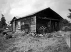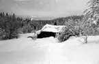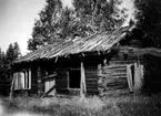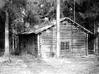 "Nittaho-Jussi" Johannes Johansson i Nyskoga sockendräkt träder ut ur rökstugan på Rautalampi hembygdsgård en morgon efter vedskvickande nattläger där.
