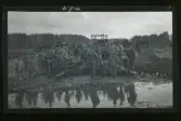 "Rensning av dammen Fogelstad." Grupporträtt av ett stort arbetslag.