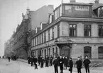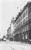 Delvis kolorerat vykort, föreställande Ronnebygatan i Karlskrona, omkring 1905.