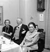 Röda korsläger i Ralingsås 1960-1961. Flera persoer i röda korsets kostymer sitter och lyssnar på en manlig talare. På ett bord står en krukväxt med en röda korset-flagga nedstucken.