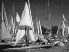 Sandhamn. Segelbåtar vid stranden under Sandhamnsregattan.