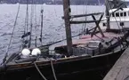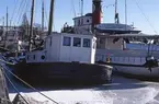 Livlig trafik i 1844-års slussar. På bilden ses fem lastångare. Till vänster på höljan ligger Uddeholms Skoghall III, byggd i Sjötorp 1915. Vid tidpunkten för detta fotografi drevs hon farm av en ångmaskin på 60 ind. hkr. Låg sommaren 1981 sjunken i Kotka, men var borta 21/1 1982. Närmast i bild till höger Daga med hemmahamn Karlstad, byggd som Delphina i Norrköping 1872. Blev upphuggen i Säffle 1951. Innanför Daga ligger en okänd båt. På väg ur slussen en okänd med ett namn som kan börja på D el. O, ca 6 bokstäver. Uppe i trappan möjligtvis Capella, med tanke på mönster i fören.