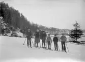 Text till bilden: "Fältsport. Skidtur: Häggvall-Holma- Gåseberg, Norrkila, Lyse-Sivik-Lysekil.1940.02.18".