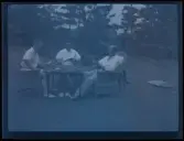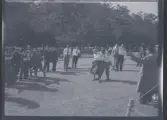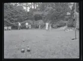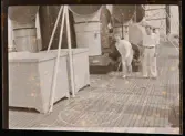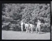 1677 B Konstfackskolan (tösen Boheman). Lek och spel i ateljén. Två manliga elever sitter på golvet och rullar bollar emellan sig.