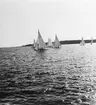 Från starbåtarnas uttagningsseglingar i Sandhamn 21 juni 1936 till OS-seglingarna i Kiel i augusti. Svenska Seglarförbundet hade uppdragit arrangemanget av dessa uttagningsseglingar åt KSSS. De båtar som kan identifieras på bilden är Daniel Sundén-Cullbergs 915 SUNSHINE i förgrunden t v samt Dag Sundén-Cullbergs 1014 MOONSHINE längst t h