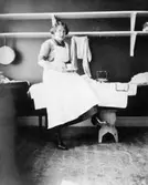 Tre kvinnor i en syateljé. Foto 1910-talet. Kvinnorna är Alma Lundgren-Åsbrink, Anna Olsson född Sundin, Råhällan och Karin Bergkvist-Hedvall.