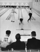Postmästerskapen (PM) i Bowling i Stockholm den 9 maj 1965. Deltagare nr 105 är Hans Svensson och kommer från Norrköping.