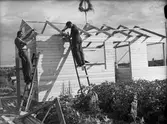 "Trädgårdscentralens nybygge under tak", Uppsala 1944