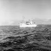 Foto i svartvitt visande lastångfartyget "THETIS" i Köpenhamn den 29.8.1954.