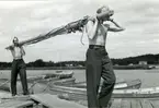 Färsk fisk, köpt av fiskare i Hanöbukten, rensas, april 1945.
