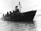 Bilden visar en transportkutter för Kustartilleriet under leveransresan från Djupvik.