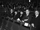 Ärekbiskop Erling Eidem, Elisabeth Eidem, Elisabeth Linnér, rector magnificus Thore Engströmer och landshövding Sigfrid Linnér på öppningen av Centralförbundet för nykterhetsundervisnings upplysningskurs i Universitetsaulan