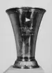Silverfärgade bägare med ingravering. Delades ut som pris i skjutövningar i Estland på 1930-talet. Togs med på flykt från Estland till Sverige år 1944.