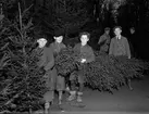 "Springpojkar klara till utryckning" med julgranar på en av Uppsala sju julgransförsäljningsplatser