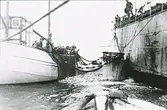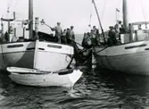 En modern snörpvad jämförd med Stockholms slott. Vaden mäter upp till 520 m. i längd och 40-45 m. i djup. Slottets huvudbyggnad mäter 120x130m. och 500m. i omkrets. Vaden altså något för stor tecknad. Stämplat på fotot: Historiska avdelningen, Göteborgs museum.