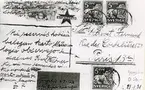 Frimärke ur Gösta Bodmans filatelistiska motivsamling, påbörjad 1950. Frimärke från Nederländerna, 1945. Motiv av Lejon och Drake
