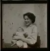 1713 Orrefors Glasbruk Ingeborg Lundin. Sittandes i en fåtölj med ett litet barn i famnen.