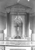 Vykort med motiv av Gustav Adolfs kyrka, exteriört och interiört.