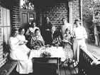 Snoddas framträder i dansrotundan, Folkets park i Skara, 1951. Kaffepaus. I mitten Snoddas, till vänster om honom Stig "Max" Larsson och kakätande kvinnlig dragspelare. Till höger skymtar Calle "Dreck" Carlsson och i bakgrunden bland andra Sigge Lundberg och Carina Gustafsson.
