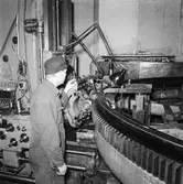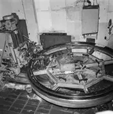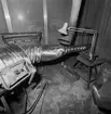 Interiör från trösklogen i Åsmundshyttan. Det stora kugghjulet drevs av vattenhjulet som satt omedelbart utanför vägen