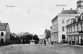 Gävle. Korsningen Drottninggatan och Norra Kungsgatan. Anton Westermark Manufactur, Gefle Handelsinstitut, Gefle symaskins- barnvagnsaffär, Sörby Trädgårds blomsterhandel m. fl.