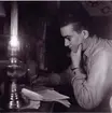 Frimärke ur Gösta Bodmans filatelistiska motivsamling, påbörjad 1950. Frimärke från Ungern, 1949. Motiv av Ungraren Sandor Petöfi. 1823-1849. Revolutionär skald. Frihetshjälte 100-årsminne av hans död. 1849-1949.