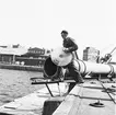 Ågesta kärnkraftverk. Under 2005 gjorde Tekniska museet tillsammans med Stockholms Läns Museum och Länsstyrelsen i Stockholms län en fotodokumentation av Ågesta kraftvärmeverk, Sveriges första kommersiella kärnkraftverk, Foto: Nisse Cronestrand. Bildbeskrivningar: Ingenjör Åke Bergman. Bilden föreställer: Plan 04 trapphus 0401. Galler i golvet till nödkylsbassäng 0001. Bassängen rymmer 400m3 vatten med en temperatur på +4 garder celsius. Förklaring av system framgår av rapport :Statens Vattenfallsverk A23/60 5/4 1960.