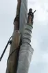 Älvbåt med råsegel på Vassbotten, Vänersborg. Enligt muntlig uppgift kan detta möjligtvis vara älvbåten "Herman".