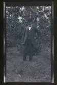 Slaktare Valo Nordström från Edstuga i sin Ford X 66 framför Skinnars ladugård. Nordström drev i ca ett års tid ett litet slakteri i en byggnad intill Skinnarkullen i Lenninge.