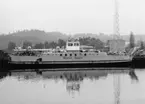Gustafsfors Fabrikers Aktiebolag. Sulfatfabrik. Kanalen ovanför slussen. Ångpannehuset till höger. Vedupplag och en vedpråm till vänster.