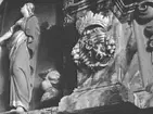 Antependium. Mittpartiet med givarnas Erik Ryning och Maria Elisabeth Kursells vapensköldar i silver. Antependiet, jämte en mässhake skänktes till Nikolaikyrkan år 1657 av fru Kursell. Kandidat S. Wallin. Örebro Läns Museum.