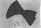 Avsatsyxa av brons. Längd 20,5 cm, bredd 5,3 cm. Skaft med höga kanter på utsidan dekorerad med inpunsad spiralornamentik. Bladet dekorerat med linjeornamentik dels vid avsatsen mot skaftet dels vid eggen.