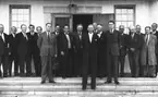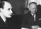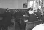 Skogsägarmöte i Vitsand, styrelsemedlemmar fr v Henning Nilsson, Änga, Albert Nilsson, Åsteby, Hilding Olsson, Brattfors, Ragnar Johansson, Kjellingerud, Skogsinspektor Erik Frykman, Skogsinspektor Kurt Svensson.
