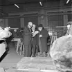 Nordiska Kompaniets tapetserarverkstad. Män och kvinnor klär om möbler.
