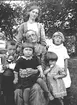Ystöl i Högshult. Fr.v: 1. Britta Juhlin 2. Kristin Isaksson (Gustens o Albins mor). 3. Hilda Svensson, Mörket 4. Adina Svensson 5. Alma, dtr t nr 7 6. Ingmar, son t nr 7 7. Tilda Lundgren 8. Elsa Larsson, dtr t nr 5 9. Marie Gustavsson, Högshult 10. Hildur, dtr t nr 7 11. Lotten Persson, Midskog (Oskar P:s hustru). 12. Hilda Johansson, ("Ekbergs") Nedre raden: 13, 14 o 15 okända. Reprofotograf: Gunnar Berggren.