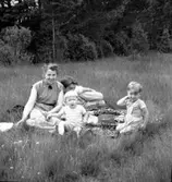 Platsen okänd. Mannen i ljus hatt är fjärdingsman David Svensson i Flugbo, hustrun Emmy (från Lenninge 6:44), född 1885. Hon har sonen Tord på armen.