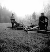 Wermlandsbankens direktör, Adolf Austrin, med sällskap har jagat hare på Jäverön runt 1920.