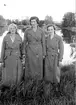 TRE VÄLKLÄDDA KVINNOR PÅ EN BÄNK.