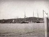 Enligt text som medföljde bilden: "Lysekil. Skeppsgossefartygen Najaden, Falken, Gladan från land 23/6 1899".