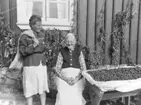 Tre kvinnor sysselsatta med att skala äpplen och mala kaffe. Kvinnan i mitten är Ebba Bergman och till höger hennes mamma Julia Bergman på Rudet.
