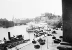 Passagerarångfartyget EXPERSS i sundet vid Vaxholms fästning.[Felidentifierad, bilden föreställer systerfartyget Norrtelje som hade lastbom på masten vilken syns på bilden. Express hade vid denna tidpunkt vit skorsten med svart topp till 1913 då W-märket kom. Norrtelje hade helsvart skorsten]