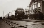 L.S.S.J. (Lidköping-Skara-Stenstorps Jernväg). Skara station med persontåg mot Gårdsjö. Foto från 1925.