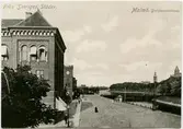 Spårvagnar på Krüger & Toll-bron över bangården. Bron färdigbyggd 1924.