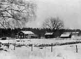 Berga herrgård. Lilla matsalen i bottenvåningen. Tapet tryckt på arkpapper, ytmönster med bladkvistar i enhetlig grå, något grönaktig färg med starka ljusskiftningar, ganska blank yta och tydligen tunnt papper. Möjligen fransk och tryckt i rulle.