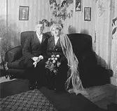 Ateljéfoto av brudparet Dagny och Karl Gustaf Pettersson (1924 - 2009), Backen eller Högen 1950-tal. Relaterat motiv: A4373.