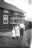Bostadshus, en pojke framför huset, en flicka på trappan till huset. Harald Pettersson (givarens pappa) och Kerstin Pettersson (givarens faster).