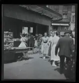 1950. Paris. Ett par utanför ett antikvariat, kväll