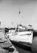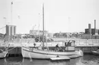 Lunde varv Ångermanland, Gudmundrå sn. Lunde. Fiskebåt HND 15 från Härnösand inne på varvet för kölreparation. I bakgrunden syns en av varvets tre pontonkranar, med vilka man gör muddringsarbeten i egen regi längs ostkusten.